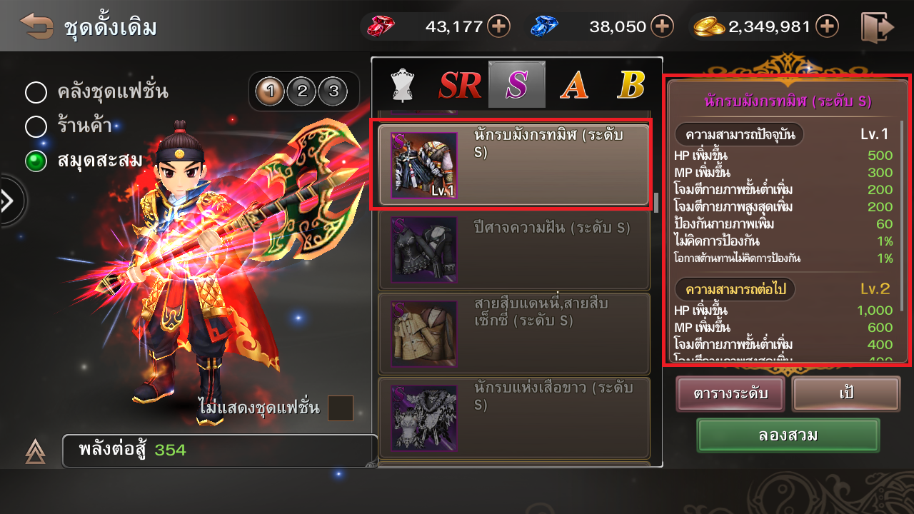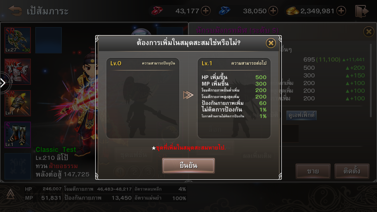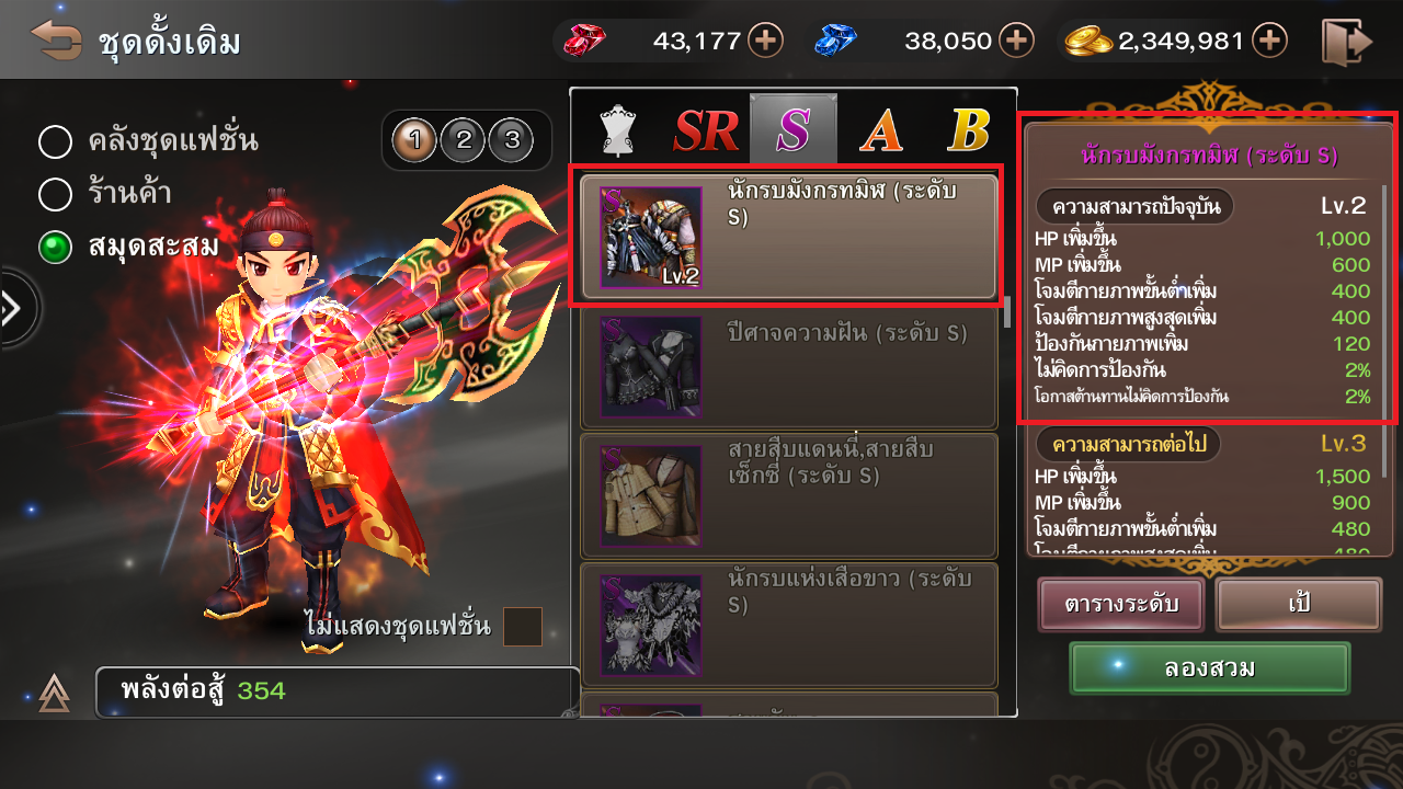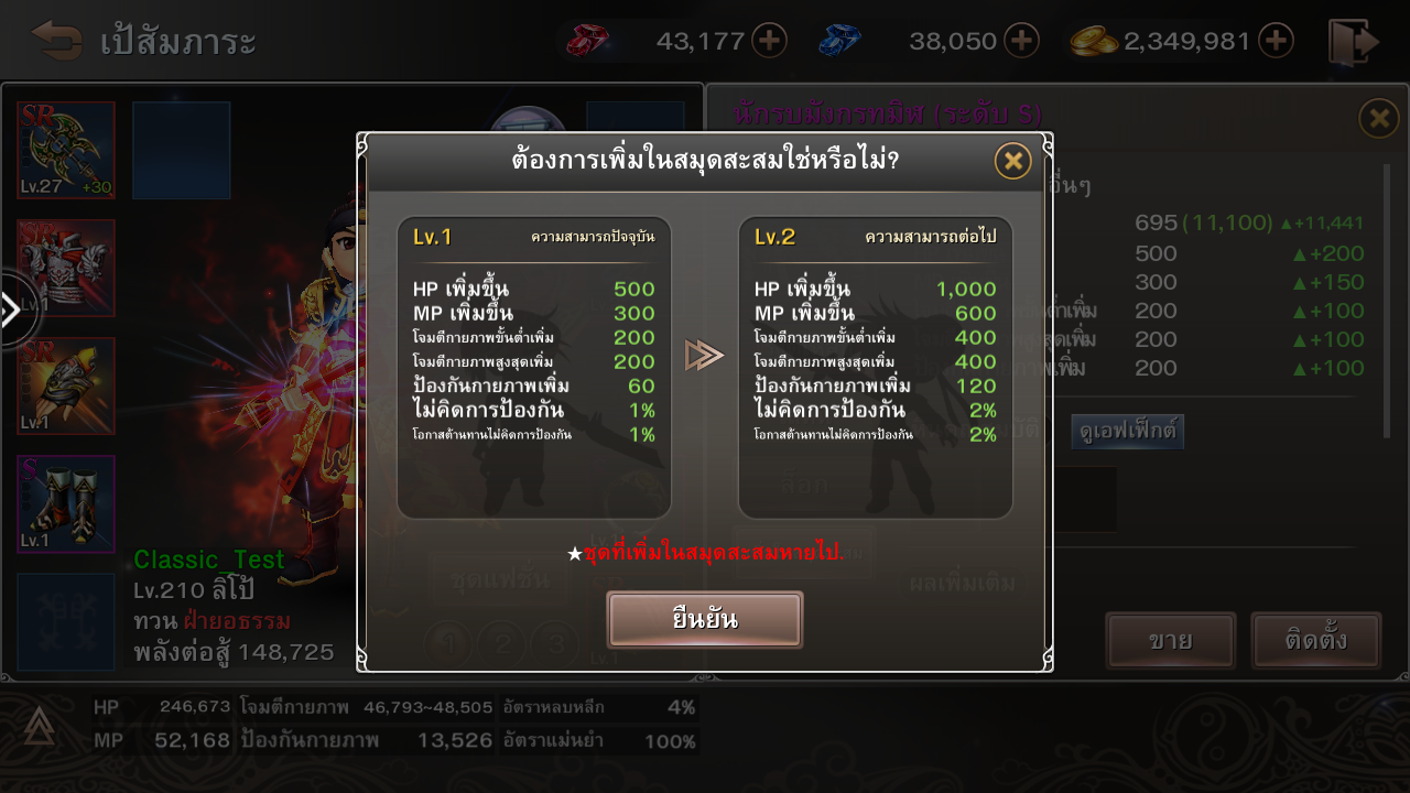 2. เมื่อเพิ่มชุดในสมุดสะสมชุดจะหายไปแล้วค่าความสามารถของตารางการเพิ่มในสมุดสะสม จะถูกนำมาใช้งาน