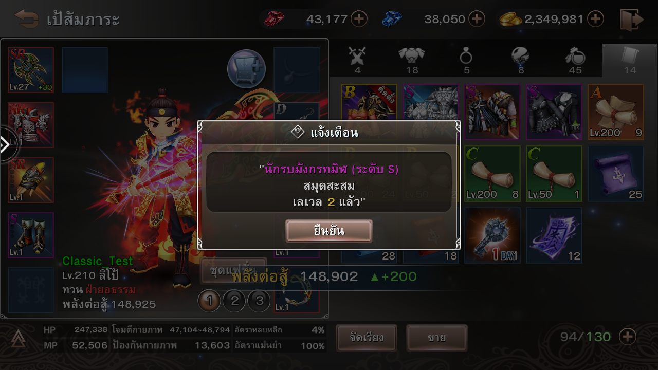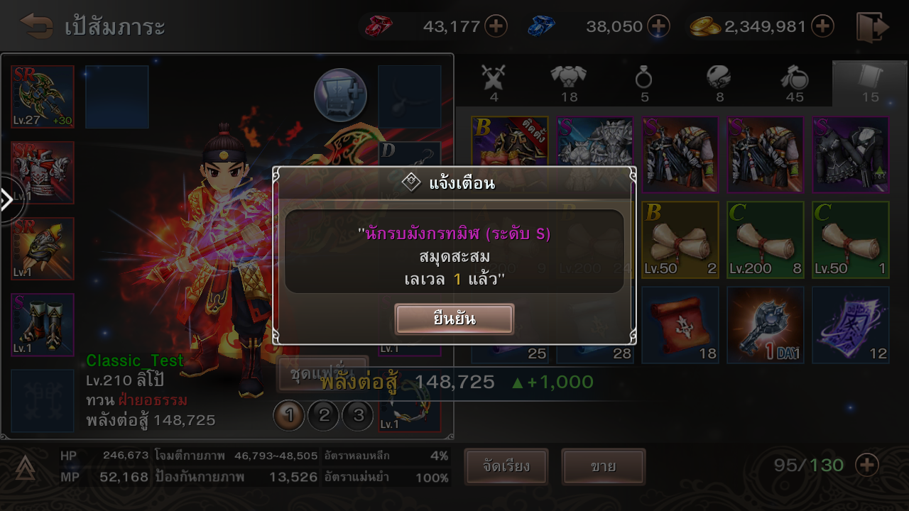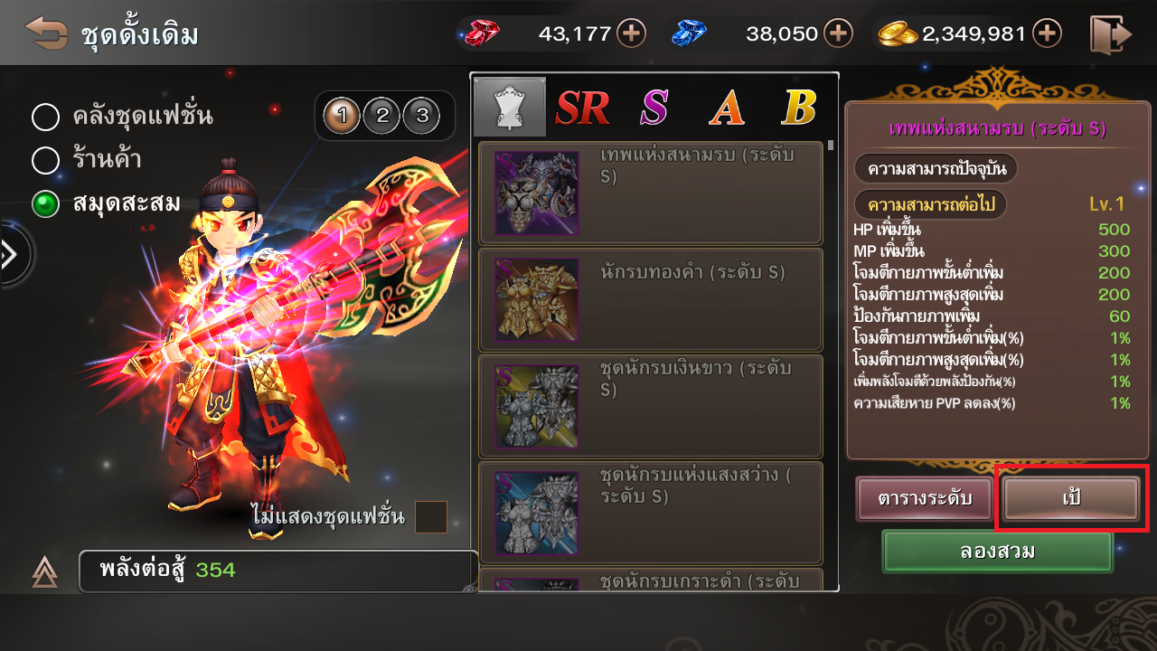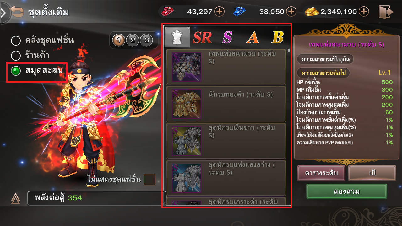 2. เมื่อเพิ่มชุดในสมุดสะสมชุดจะหายไปแล้วค่าความสามารถของตารางการเพิ่มในสมุดสะสม จะถูกนำมาใช้งาน