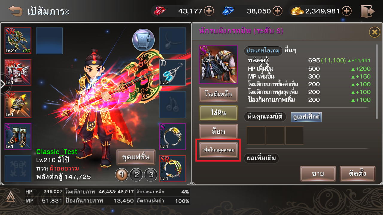 1. การเพิ่มในสมุดสะสม ไอเทมต้องไม่ล็อกอยู่และไม่มีหินคุณสมบัติติดตั้งอยู่