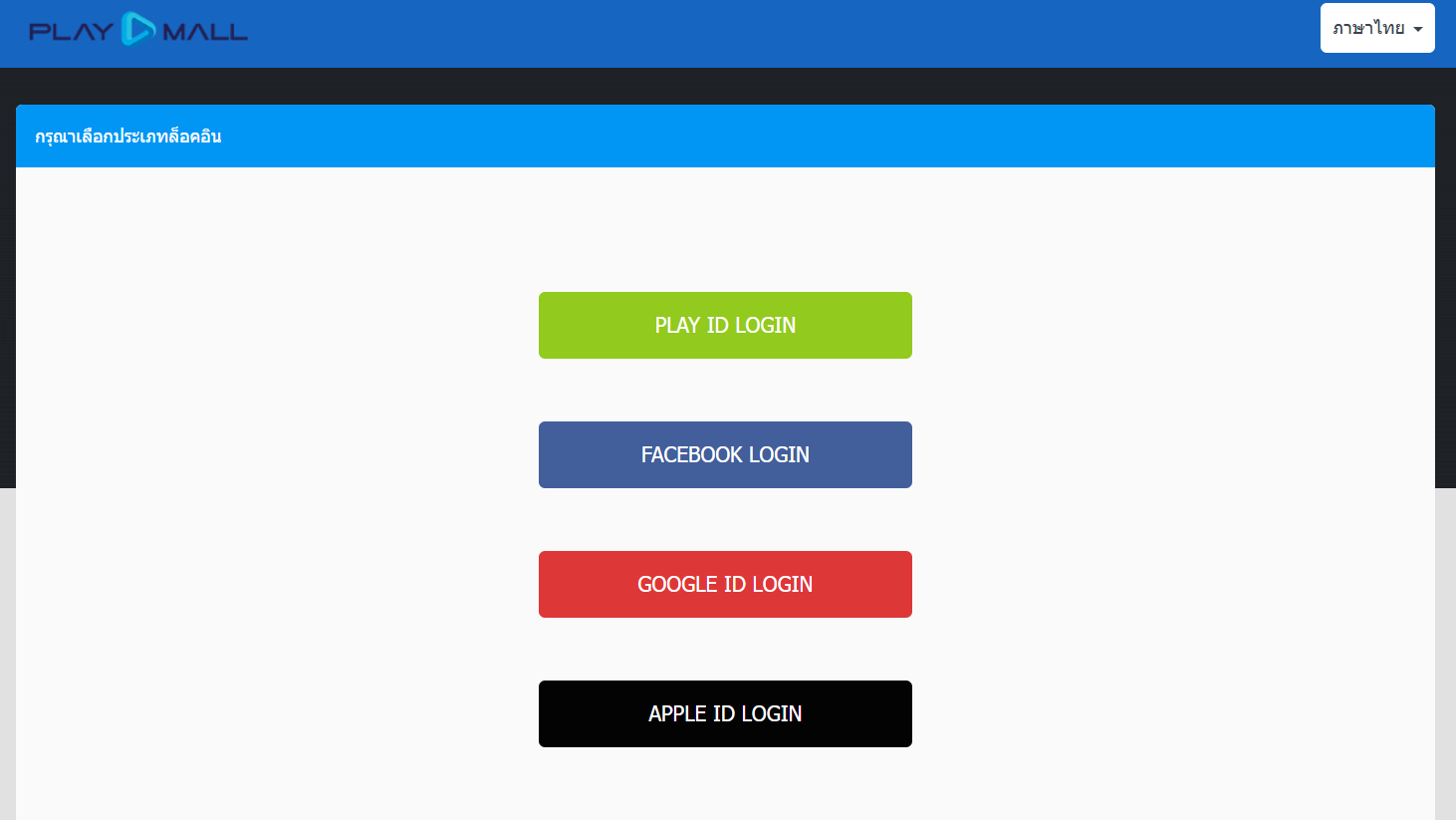 2. กดเลือกประเภท ID ที่ต้องการเติมเงินเข้าระบบ PlayMall