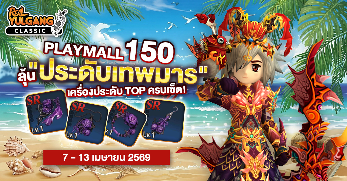 ข่าวสารทั้งหมด Yulgang Classic โปรโมชั่น โปรโมชั่น PlayMall 150 “ประดับเทพมาร” ลุ้นรับเครื่องประดับ TOP ครบเซ็ต!