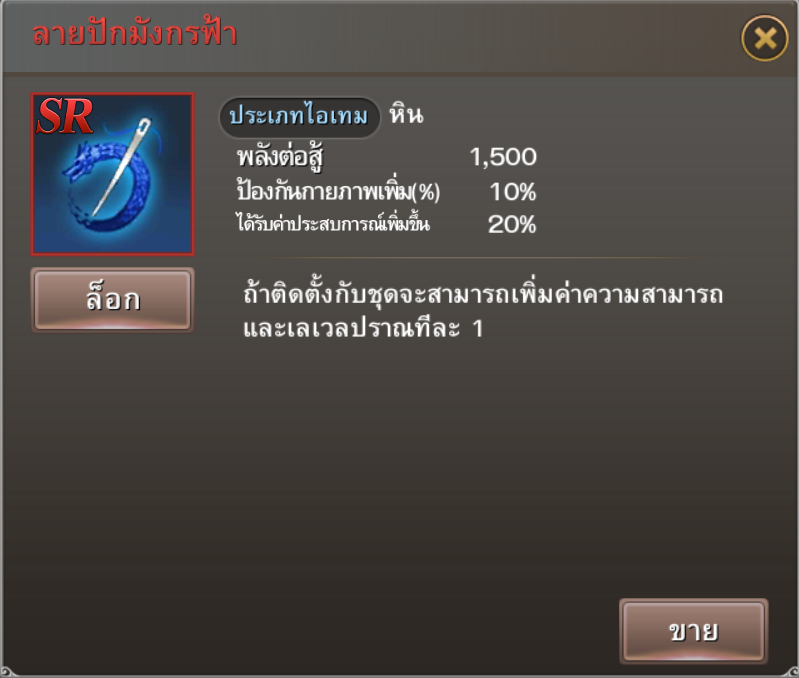 ![]() กล่องสุ่มเกราะระดับ SR (1 ชิ้น) |