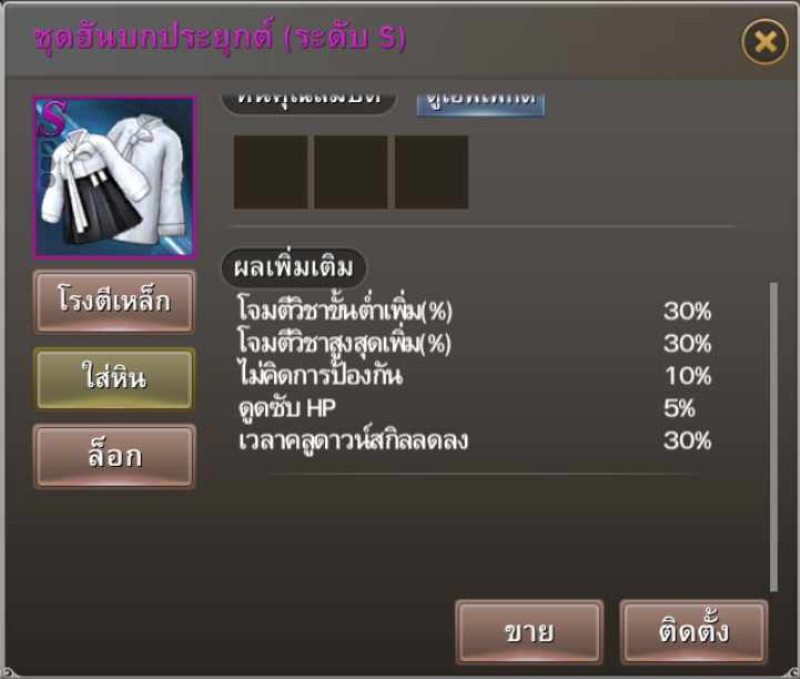 ![]() กล่องสุ่มเกราะระดับ SR (1 ชิ้น) |