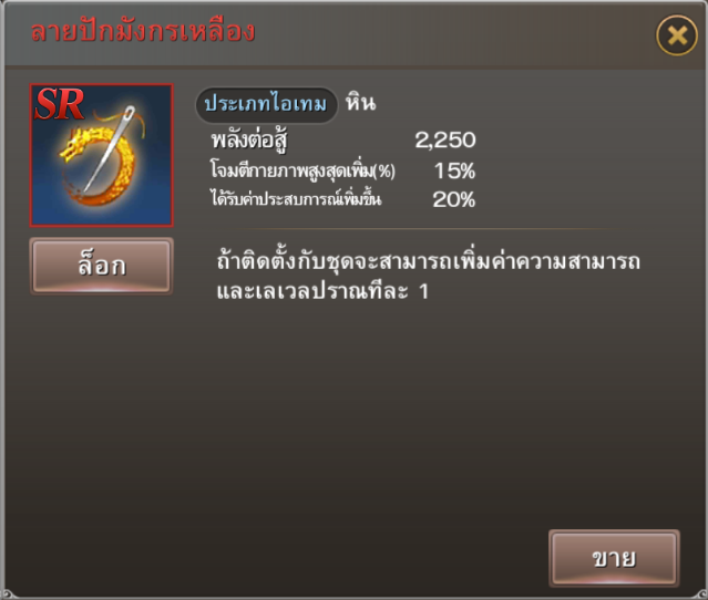 กล่องสุ่มเกราะระดับ SR (1 ชิ้น)