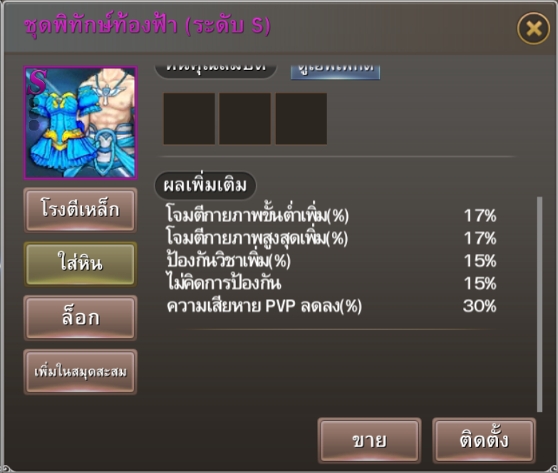 ![]() กล่องสุ่มเกราะระดับ S (1 ชิ้น) |