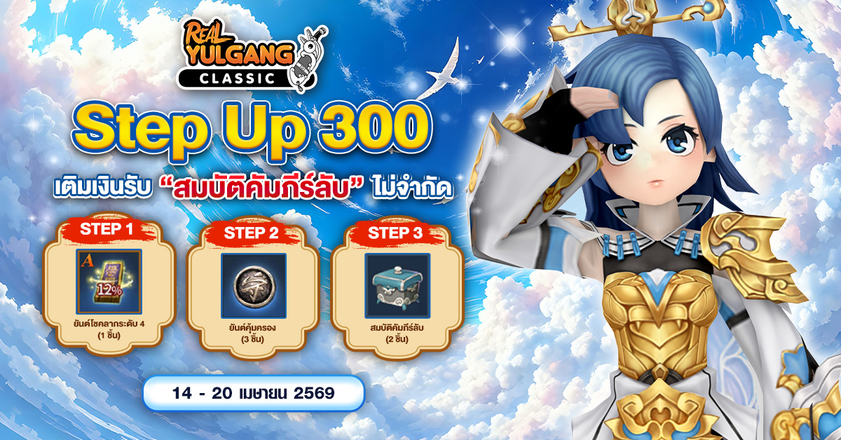 ข่าวสารทั้งหมด Yulgang Classic โปรโมชั่น Step Up 300 รับ “สมบัติคัมภีร์ลับ” ไม่จำกัด