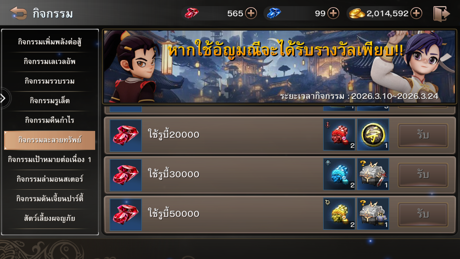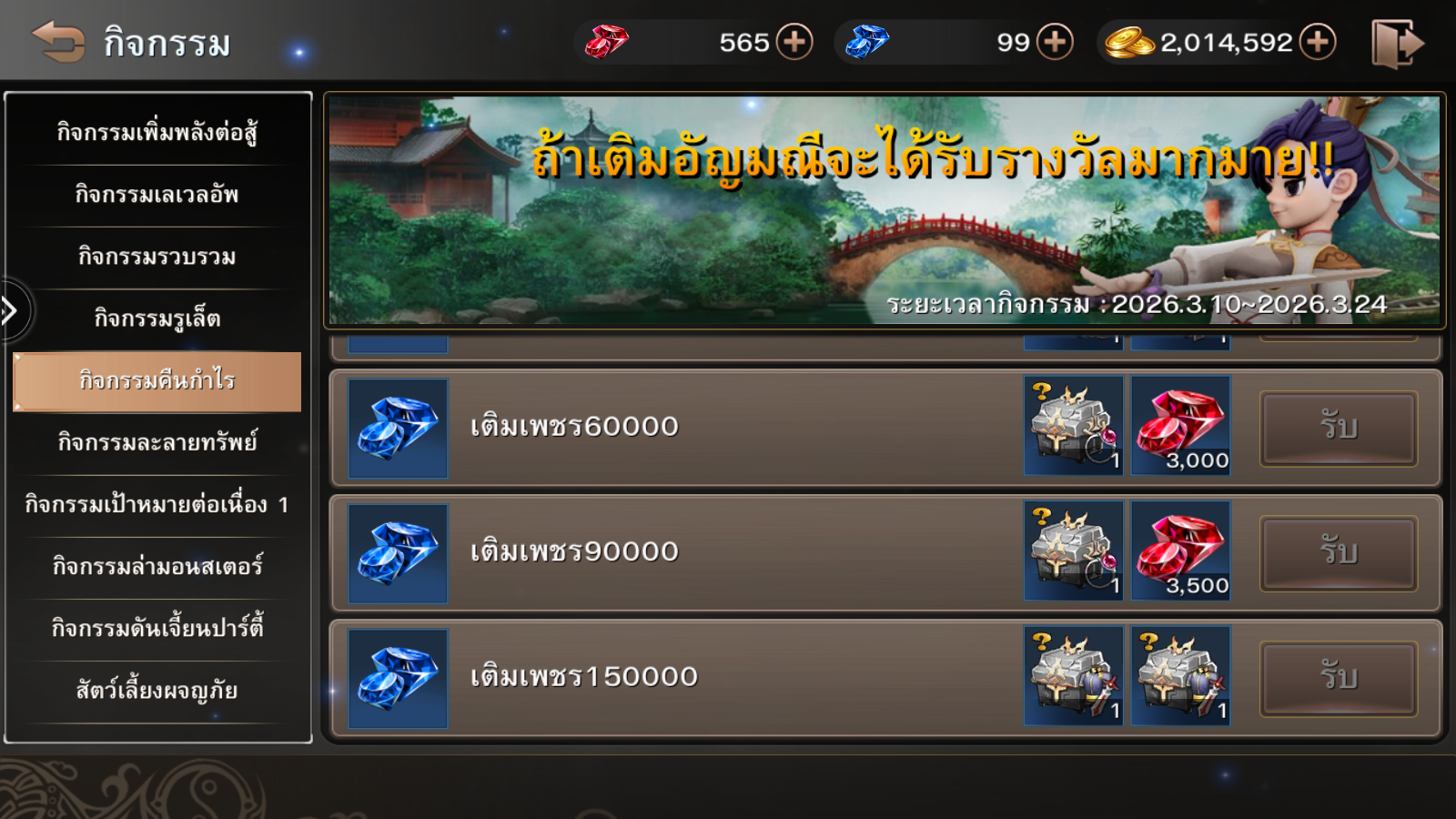 ระยะเวลากิจกรรม : 10 – 24 มีนาคม 2569 (ก่อนปิดปรับปรุงเซิร์ฟเวอร์)
