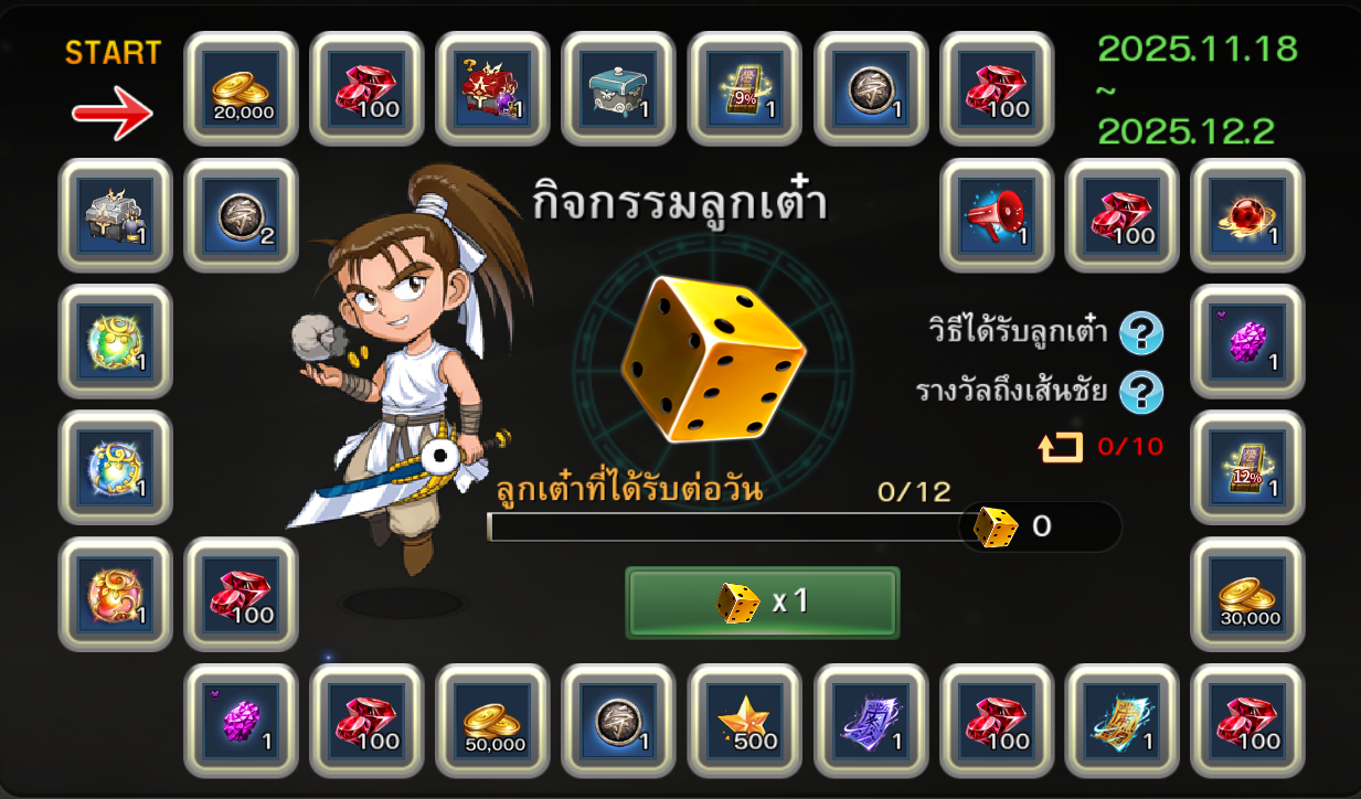 ทำภารกิจประจำวันเพื่อรับสิทธิ์ ทอยลูกเต๋าลุ้นรับไอเทมสุดพิเศษมากมาย