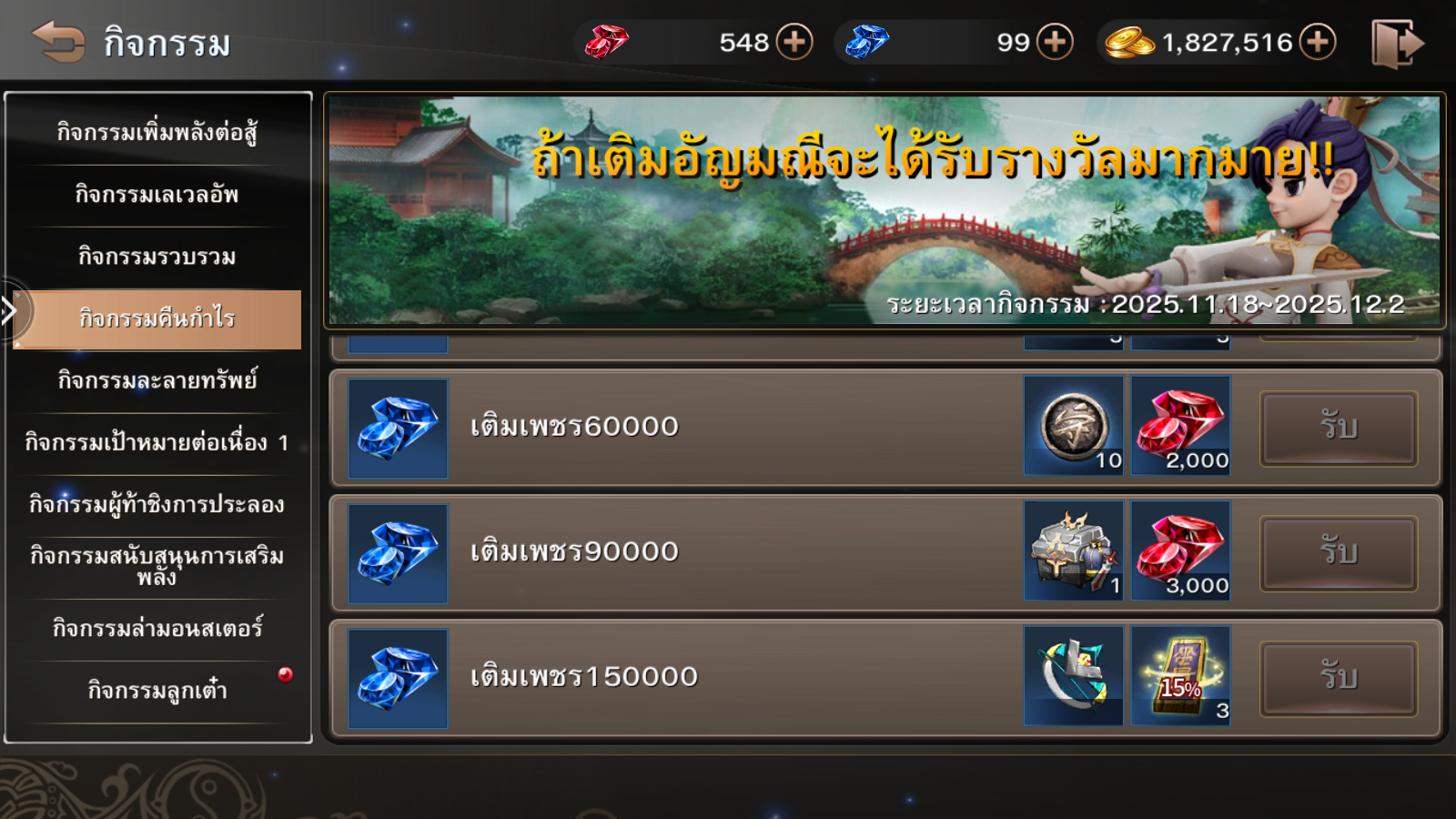 ระยะเวลากิจกรรม : 18 พฤศจิกายน – 2 ธันวาคม 2568 (ก่อนปิดปรับปรุงเซิร์ฟเวอร์)
