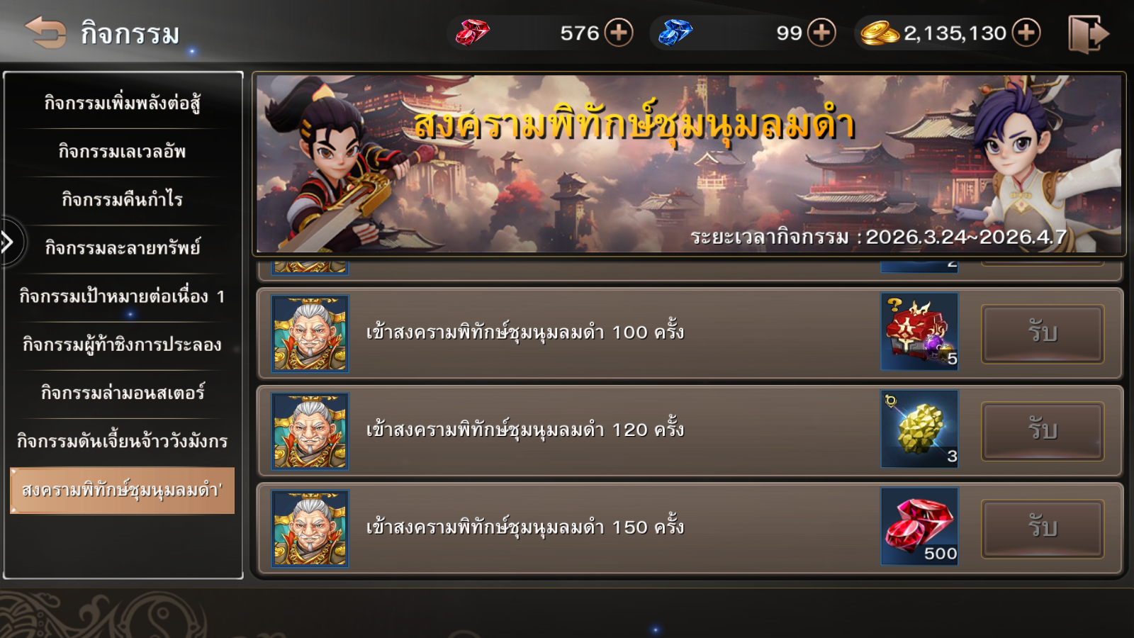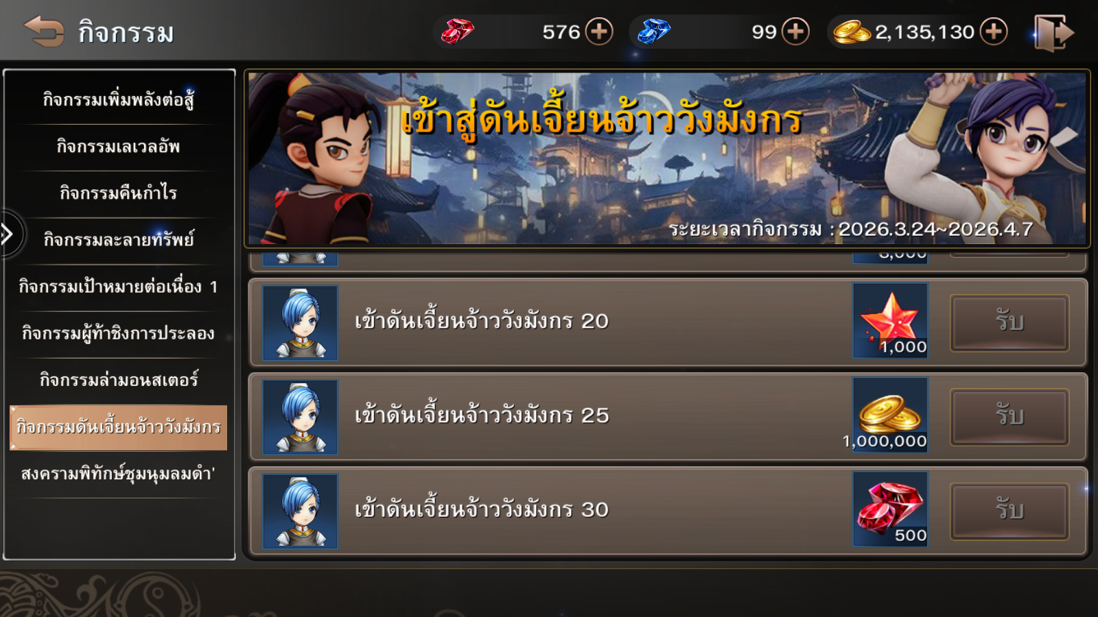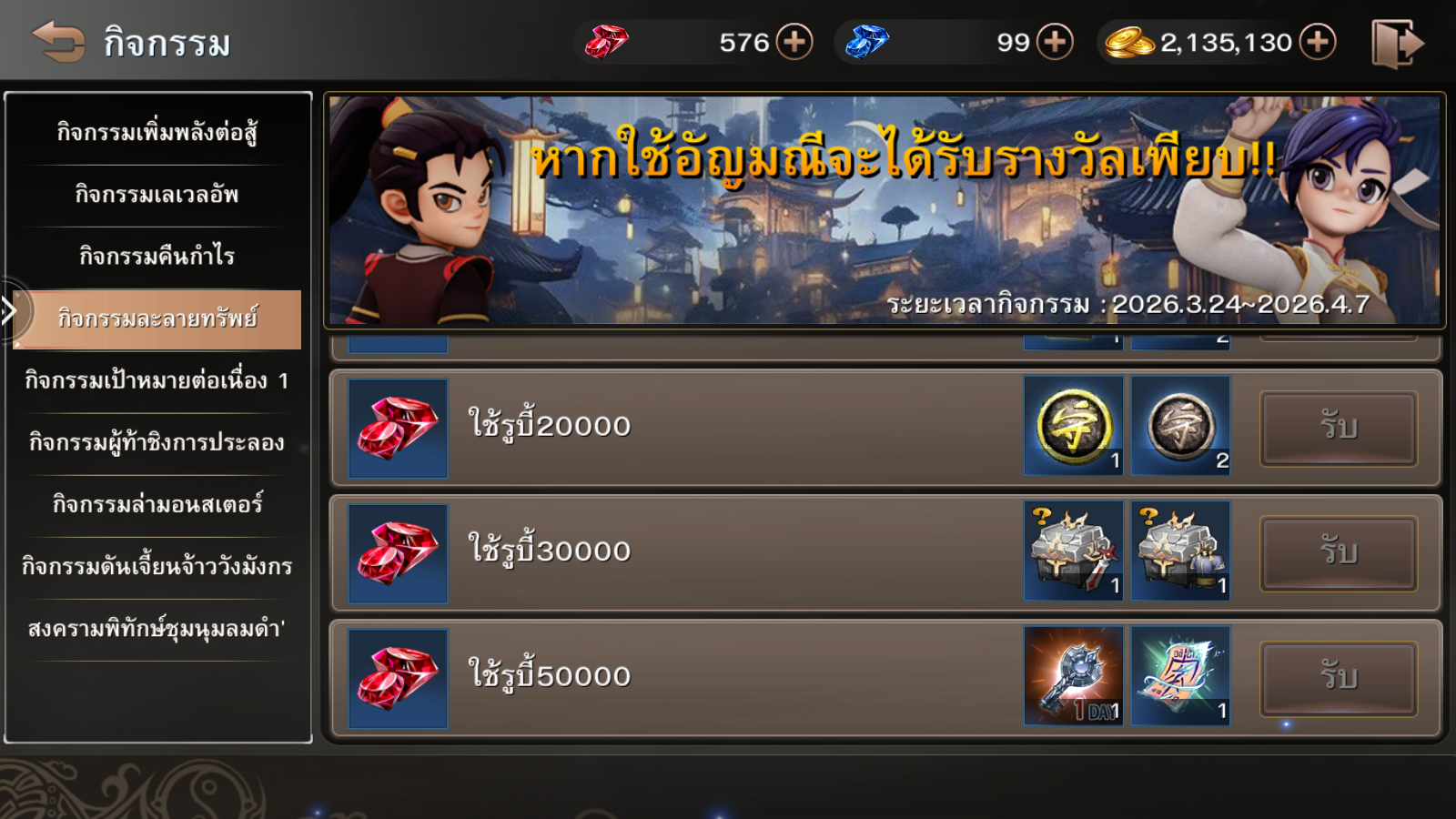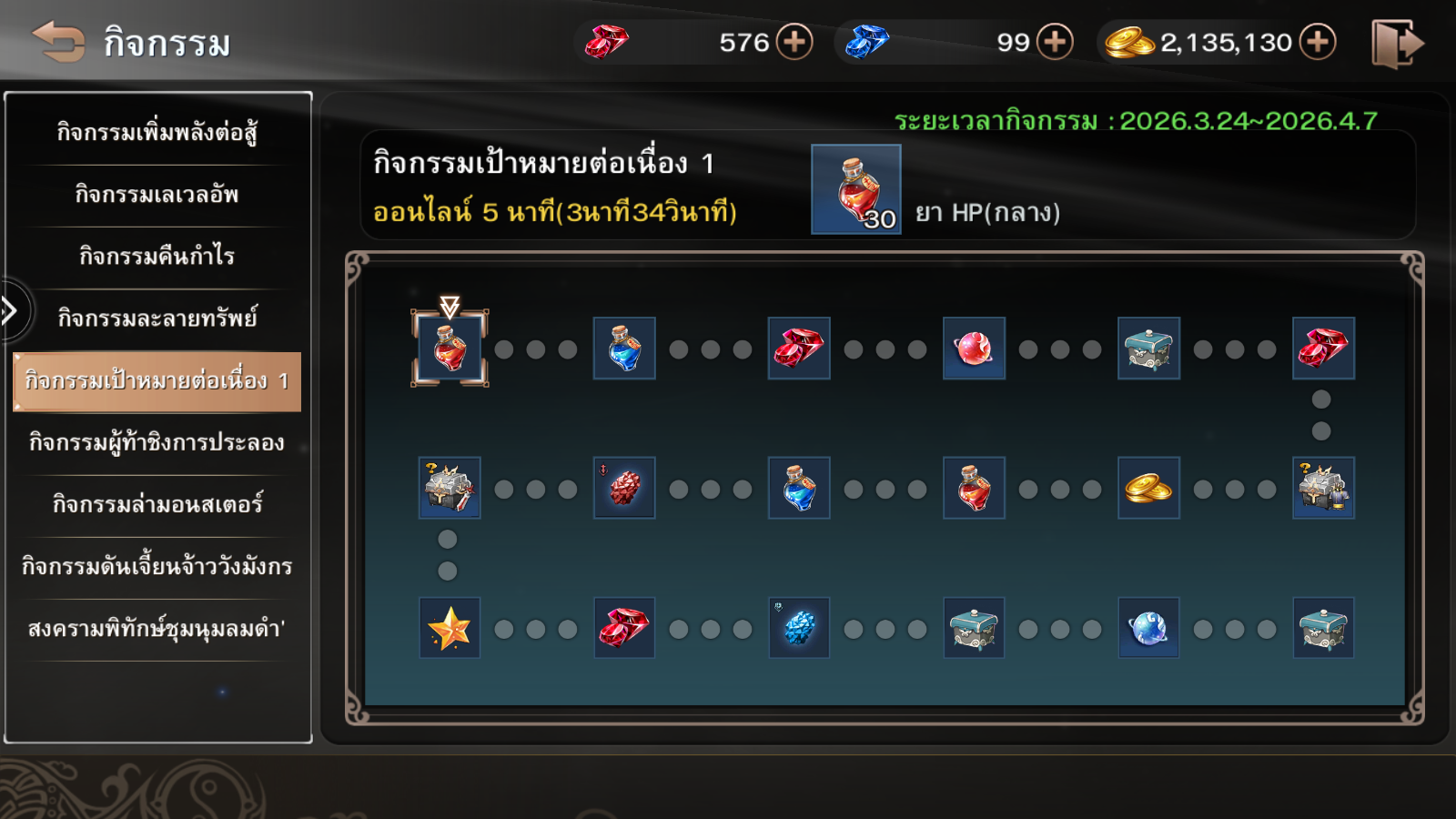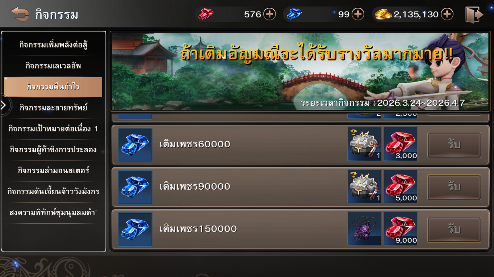 ระยะเวลากิจกรรม : 24 มีนาคม – 7 เมษายน 2569 (ก่อนปิดปรับปรุงเซิร์ฟเวอร์)