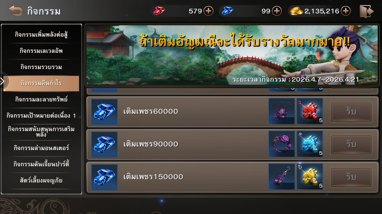 ระยะเวลากิจกรรม : 7 – 21 เมษายน 2569 (ก่อนปิดปรับปรุงเซิร์ฟเวอร์)
